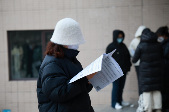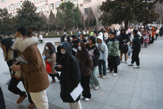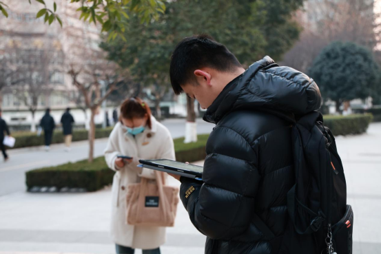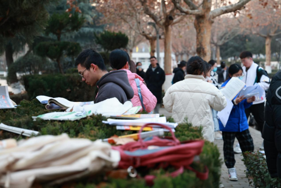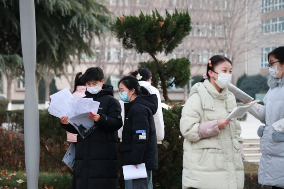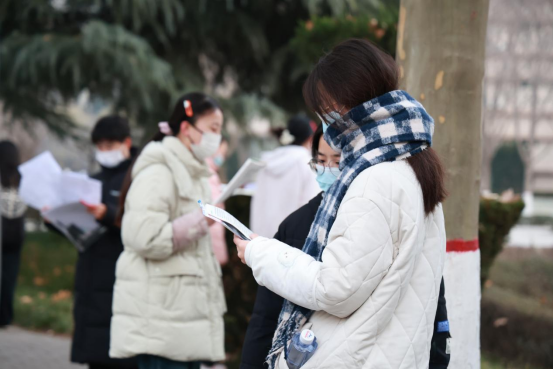 拼搏是最美的人生状态,候考间隙,寒风凛冽,但学子们手不释卷,抓紧每分每秒温习知识点。