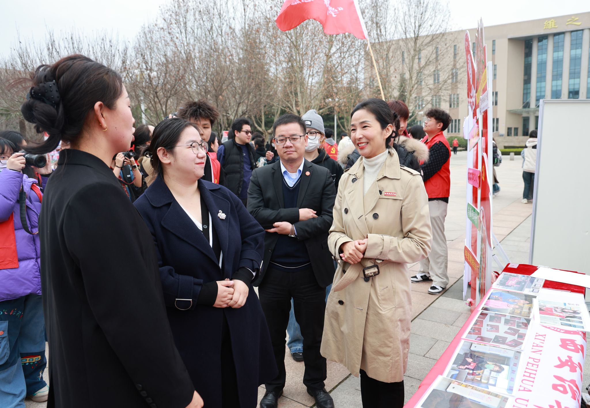 与会领导嘉宾一起参观体验了学校“学雷锋”志愿服务示范活动。活动涵盖7个学院、5个学生组织,示范活动结合专业特长,共计展示出普法宣传、应急救援、禁毒防艾、心理咨询、非遗体验等22个志愿服务项目。