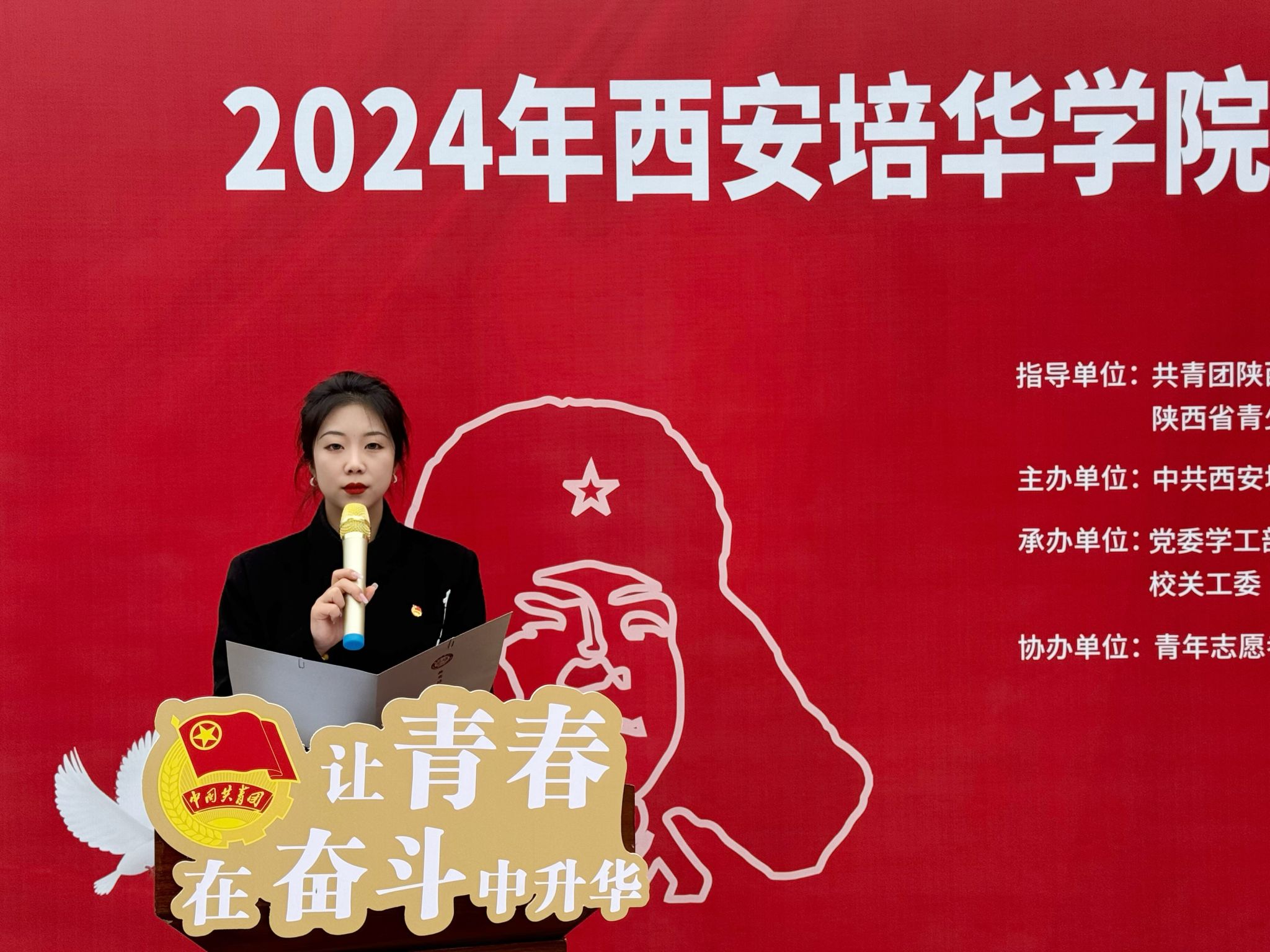 校团委宣传部部长林文婷宣读《关于开展2024年“学习二十大 永远跟党走 青春志愿行”学雷锋志愿服务活动的通知》