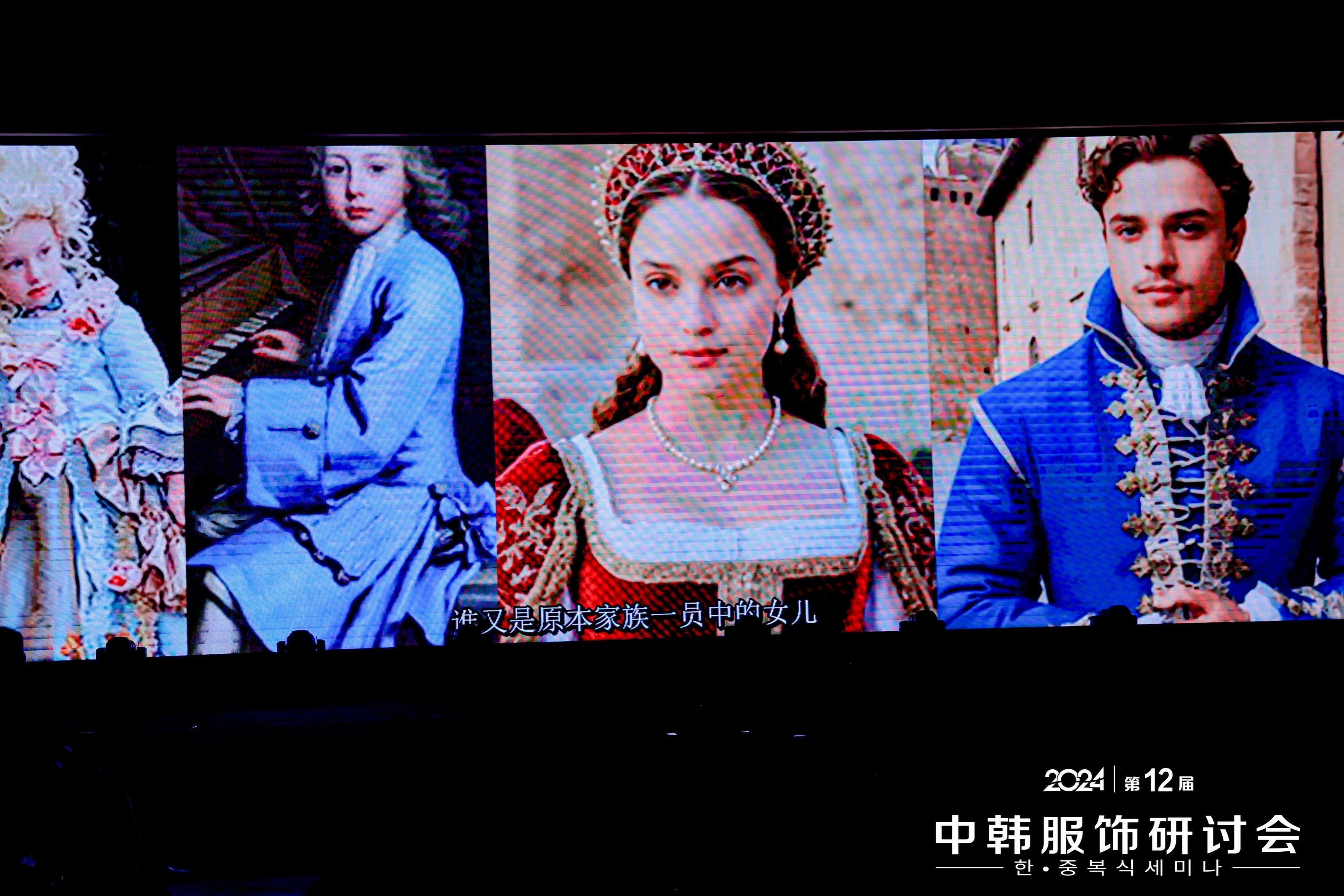 韩国群长大学教授全亮培作题为《韩国舞台服装的策划及设计》的主题分享。他以罗密欧与朱丽叶舞台服装设计贯穿整个讲座,介绍了舞台服装设计的基本原则。