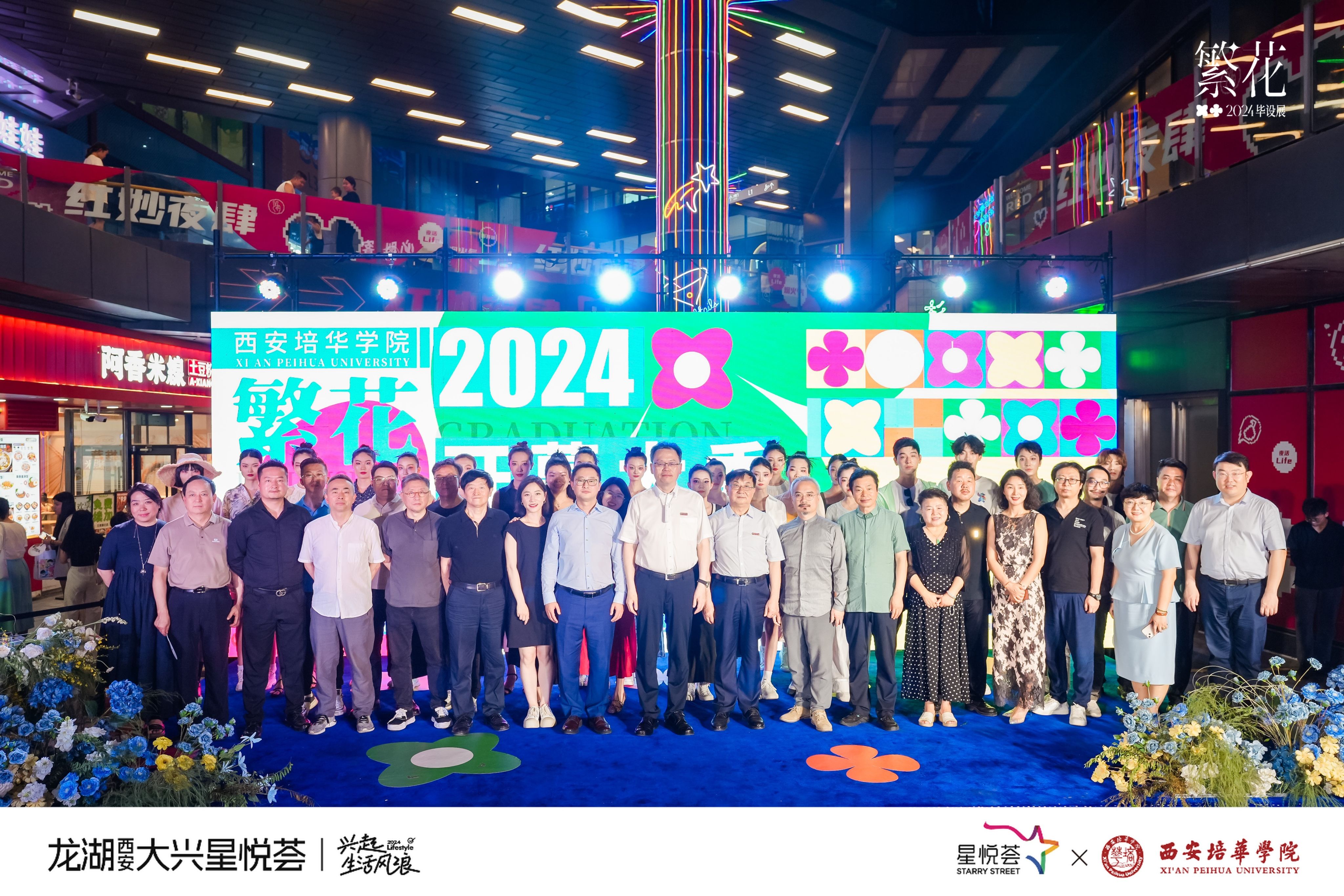 陕西师范大学、西安建筑科技大学、西安科技大学、西安外国语大学、西安美术学院、西安交通大学城市学院、西安欧亚学院等多所高校嘉宾,陕西工艺美术协会主席贺兴文、陕西省妇女手工协会会长崔玮、陕西省旅游协会非物质文化遗产分会秘书长杨帆等各行业、企业友人,龙湖商业西安事业部总经理王焕诚等嘉宾,星空·官方站网页版理事长姜波,校长李映方,常务副校长胡俊生,副校长、党委副书记姚文静、校长助理鲍伟等校领导出席毕业设计展开幕式。