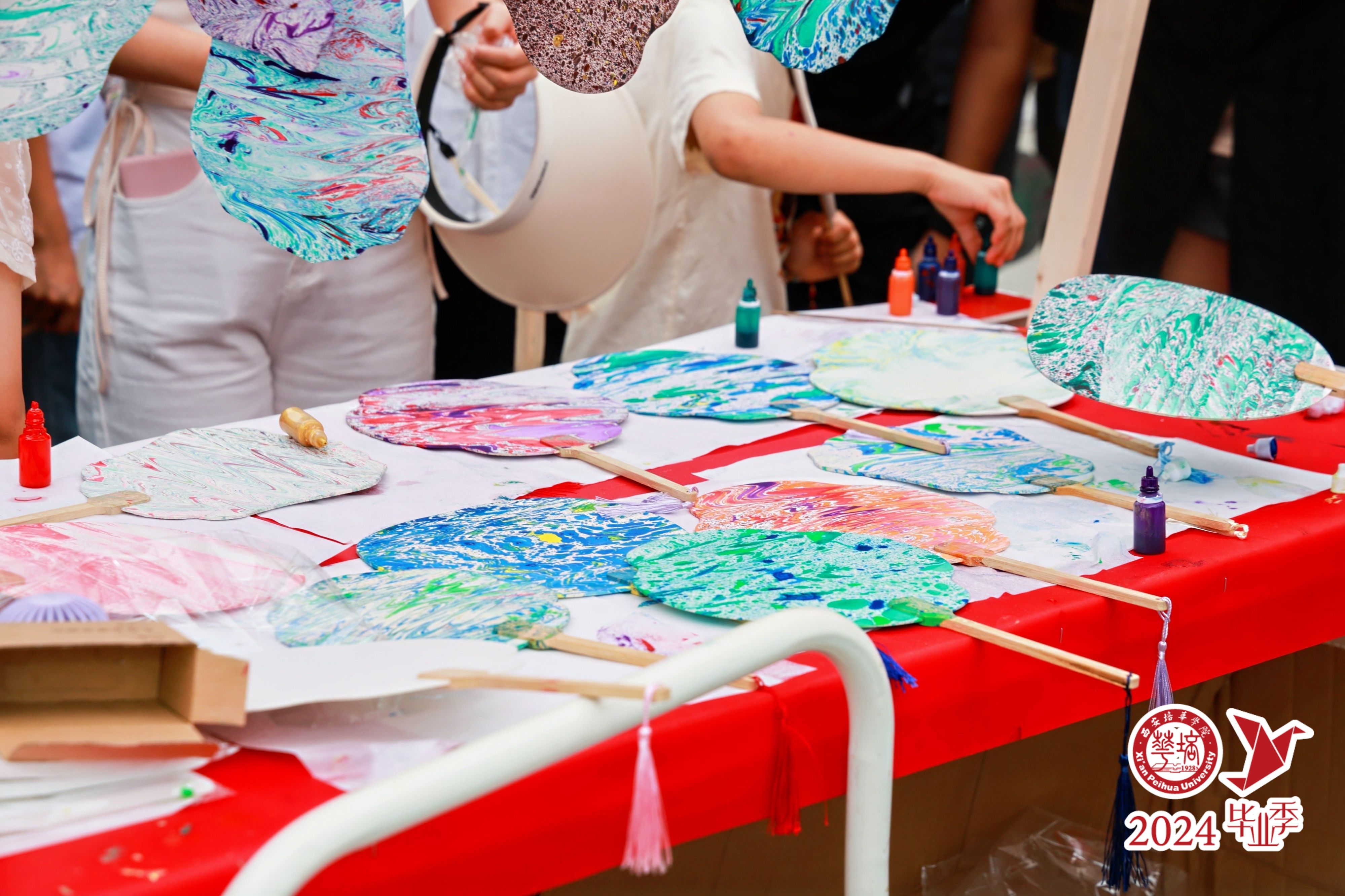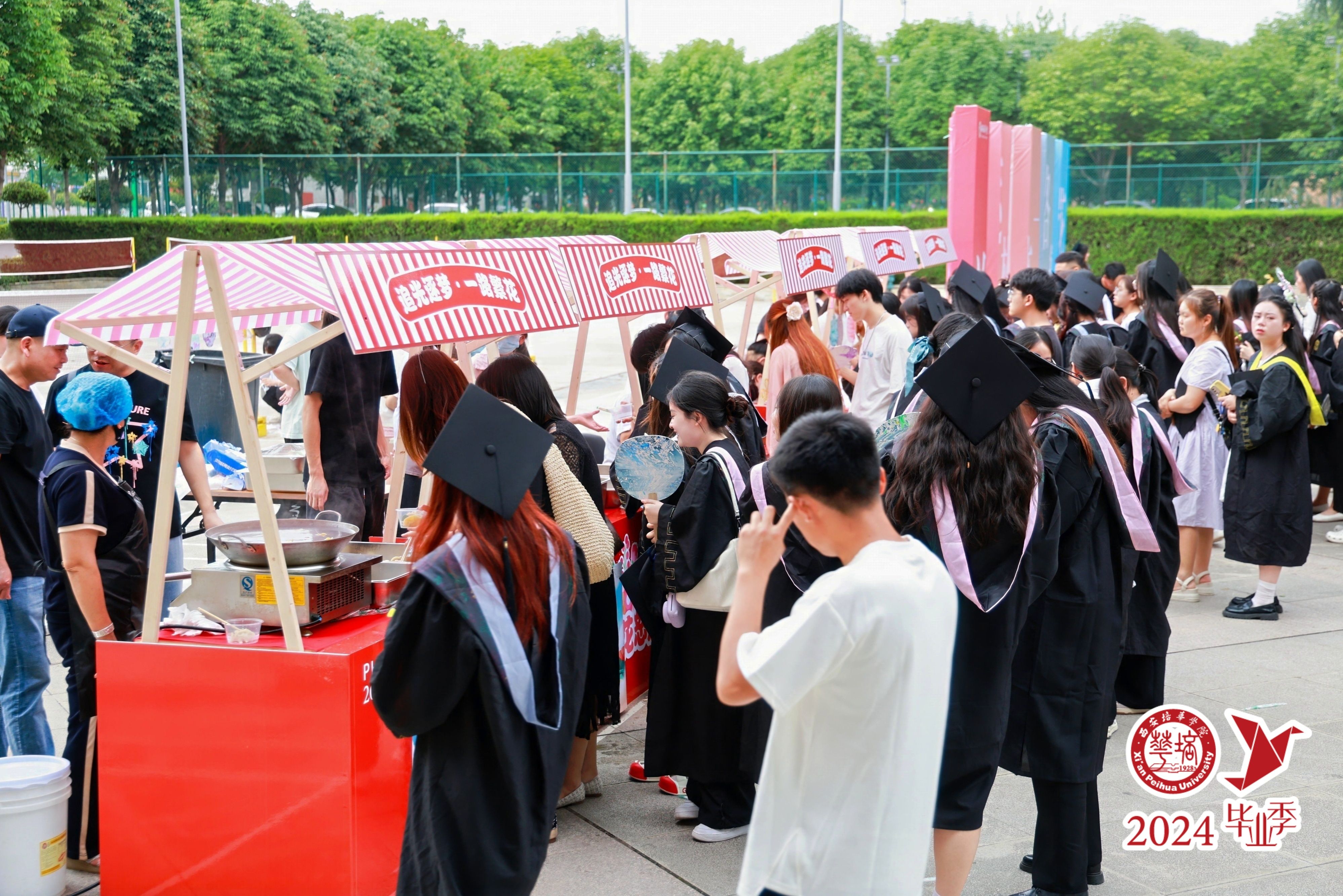 场馆外,学校特别设立了“追光逐梦 一路繁花”主题的系列活动。“步步生花”的路标、“锦上添花”景观墙,与“妙笔生花”“花间投壶”“繁花似锦”“心花怒放”的毕业游戏互动区遥相呼应,毕业生们手持“一路繁花”“I LOVE PHU”“前程似锦”等主题元素的手牌纷纷合影留念。