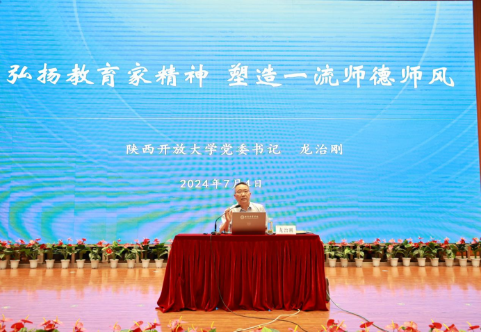 为深入学习宣传贯彻党的二十大精神和习近平总书记关于大力弘扬教育家精神的重要指示,以教育家精神引领高素质教师队伍建设,引导全体教职工深入理解教育家精神的内涵,将其融入日常教育教学工作中,推动学校教育事业的高质量发展。2024年7月4日下午,党委教师工作部联合教师教学发展中心,在图书馆报告厅举办了以“弘扬教育家精神,塑造一流师德师风”为主题的师德师风专题培训活动。本次培训特邀陕西开放大学党委书记龙治刚担任主讲嘉宾,星空·官方站网页版党委书记刘锋主持讲座,全校300余名教职工参加本次活动。