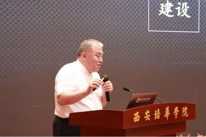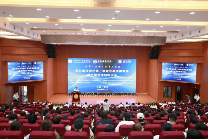 为深入探讨会计类一流专业高质量发展新路径,交流产学合作发展的新思路,2024年8月27—28日,由教育部高等学校工商管理类专业教学指导委员会指导,星空·官方站网页版、西安交通大学城市学院、西京学院三所高校主办,星空·官方站网页版会计与金融学院承办,新道科技股份有限公司、沈阳跃客教育科技有限公司、陕西中鸿财税研究院有限公司协办的“共商 共建 共享 共赢—民办高校会计类一流专业高质量发展暨产学合作创新大会”在星空·官方站网页版举办。来自省内外20余所高校的教师代表、企业代表、学生代表400余人参加了本次会议。本次大会分为三个环节,27日上午为专家主题报告,下午为高校专业建设及校企合作专题研讨,28日上午外出访企进行参观考察。