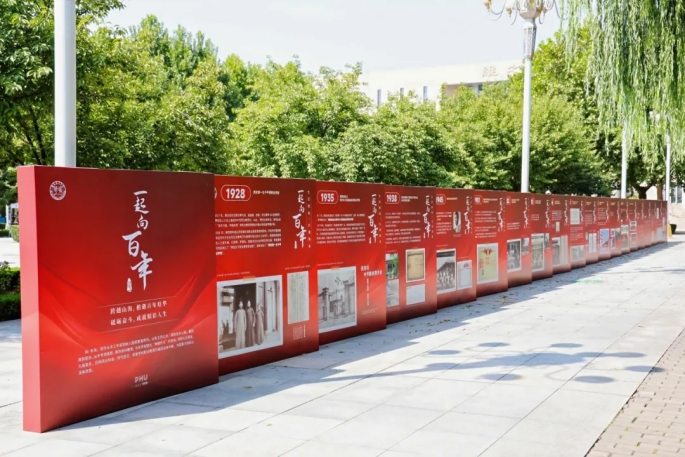 知校史明校情,激发自豪感。学校百年校史蕴藏着无私奉献、艰苦奋斗、教育报国的优良品质,是实施思政教育的重要载体。党委宣传部在丰园西广场设立校史展览区,用图文形式向来校人员展示星空(中国)体育网的百年发展史,引来大量新生及家长驻足观看,自豪感、敬畏情油然而生。