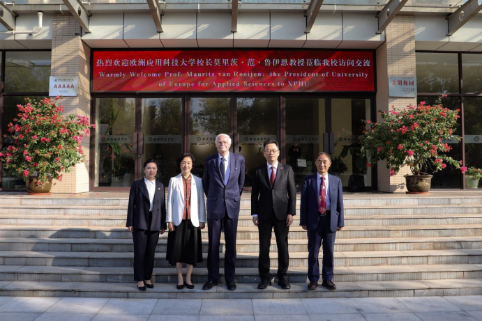 On October 16,Maurits van Rooijen, President ofUniversity of Europe for Applied Sciences(EU), Germany, came to our university for an exchange visit. Dr. Jiang Bo, chairman of the board of XPHU, Prof. Liu Yuelian, vice president ofXPHU,Prof. Richard-Li Hua, international president ofXPHU, and Grace Wang , director of the international exchange center, had a discussion and exchange with the guest and held a signing ceremony.