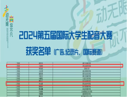 学校凭借优秀的指导团队和同学们强大的人物塑造能力,成为西北地区获奖最多的高校,得到了业界人士和大赛主办方充分的认可和赞赏,也展示了陕西高校创新创业在线开放课程《影视片配音》与陕西省一流本科课程《播音主持创作基础》的实践成果。