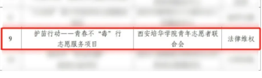 护苗在行动,青春不“毒”行志愿服务项目获法律维权类项目金奖
