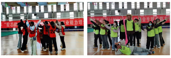 素质拓展环节邀请到专业团队进校开展就业能力培训活动,进行了达芬奇密码、闯三关、华彩乐章等游戏。在紧张刺激的游戏过程中,不断增强团队间的默契,帮助学员提升沟通表达能力、团队协作能力和领导能力。