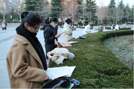 考生们或手持资料轻声诵读,或闭目凝神,默默在心中勾勒着即将奋战的蓝图。