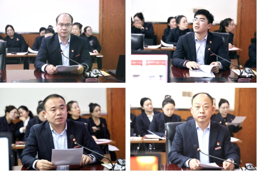 机关第一党支部书记李健、机关第四党支部书记闵波、机关第三党支部书记权勇太、机关第二党支部书记姚斌依次述职