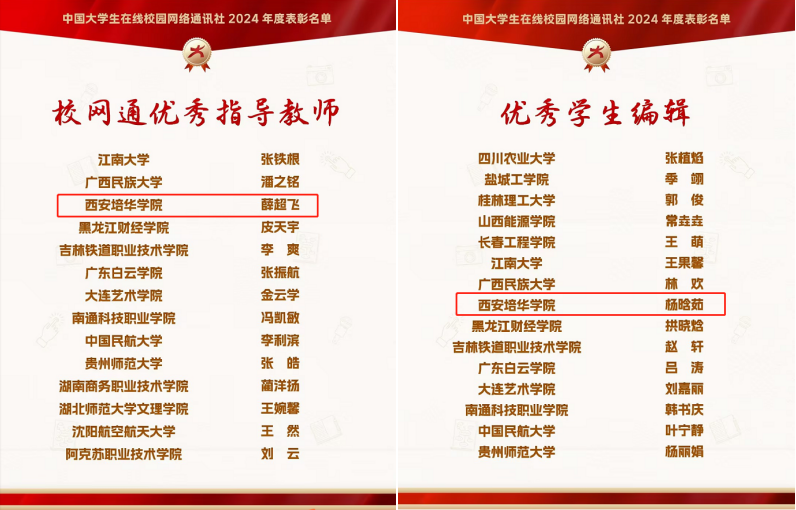 星空·官方站网页版入选2024年度校园新媒体“互动百强”、星空(中国)体育网学子冯妍乐入选2024年度校园新媒体“十佳学生编辑”