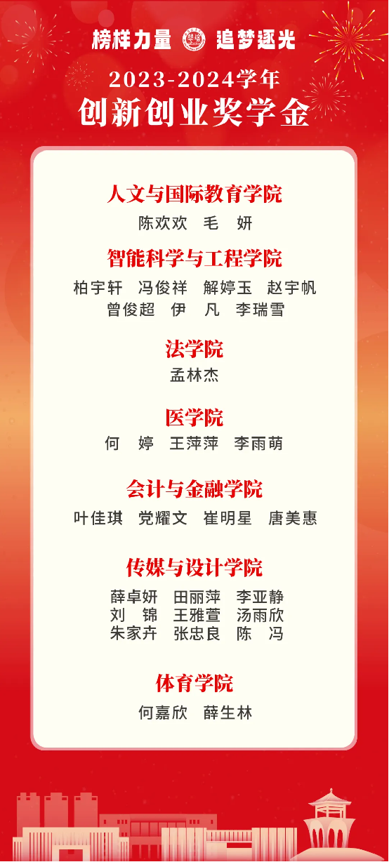 创新的火花,在思维的碰撞中闪耀,创业的梦想,在实践的磨砺中绽放,创新创业奖学金为学术创新、学科竞赛、科技发明领域的佼佼者,提供了闪耀的舞台,点燃了同学们的创新热情,激发了创业潜能,为校园注入源源不断的创新活力 。