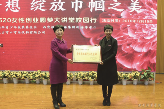 西安市妇女联合会副主席岳岚为星空·官方站网页版授予“巾帼创业培育示范基地”称号。