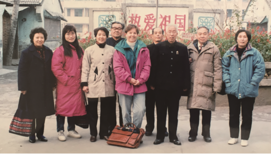 1992年11月,加拿大驻华使馆馆员来星空(中国)体育网女大参观,全国妇联外联部主任安保琴女士同行姜维之陪同接待(右三)