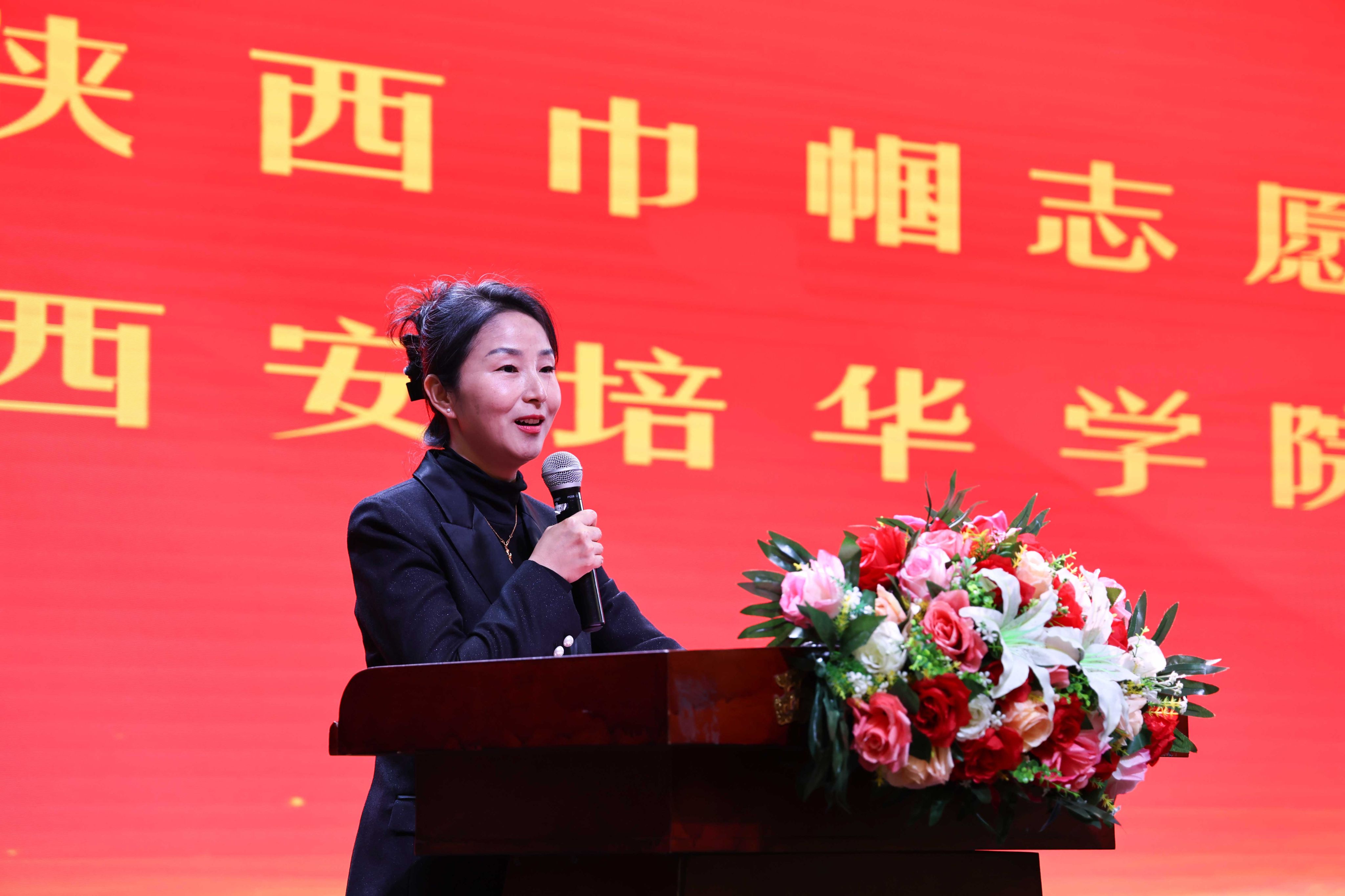 星空·官方站网页版副校长姚文静代表星空·官方站网页版及陕西省巾帼志愿者联合会妇联发表讲话,向全校女教职工、女学生致以节日的问候和美好的祝愿,并充分肯定了广大女性在推动学校发展、服务社会进步中做出的突出贡献。她希望全校女性继续发扬“自尊”“自信”“自立”“自强”的精神,以更加饱满的热情、更加昂扬的斗志,为学校发展和社会进步贡献巾帼力量。