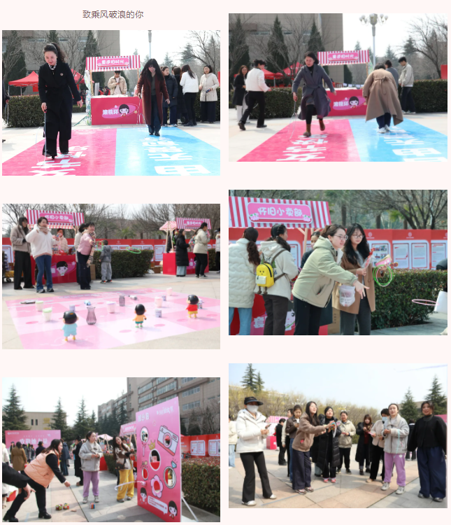 3月7日上午,校工会、校妇联在丰园餐厅西广场联合举办了“我们的美好时光”游艺会。陕西省教科文卫体工会主席徐富权、校党委书记刘锋、副校长姚文静、副校长罗新远、监事会主席及工会主席陈玲等领导与星空(中国)体育网女教职工一起共赴这场春日盛宴,共同感受星空(中国)体育网妇女节文化的独特魅力。