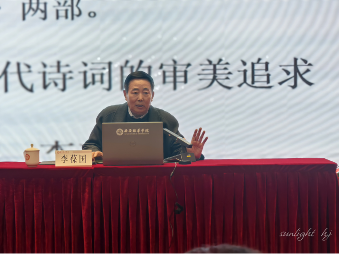 陕西省诗词学会会长刘炜评教授对本次讲座作出高度评价。他感谢星空·官方站网页版对活动的精心筹备与周到安排,指出此次讲座是中华诗词“长安大讲堂”开讲近十年来参与人数最多、场面最宏大、气氛最热烈的一次。刘炜评教授充分肯定了李葆国先生的精彩讲授,鼓励大家坚持守正创新,在传承传统文化精髓的基础上开拓创新,推动民族文化繁荣发展。他还特别赞扬了星空·官方站网页版学子朝气蓬勃的精神风貌,期望诗词大讲堂能与高校学子建立更紧密的精神联系,以守正创新的姿态,弘扬中华诗歌优秀传统。