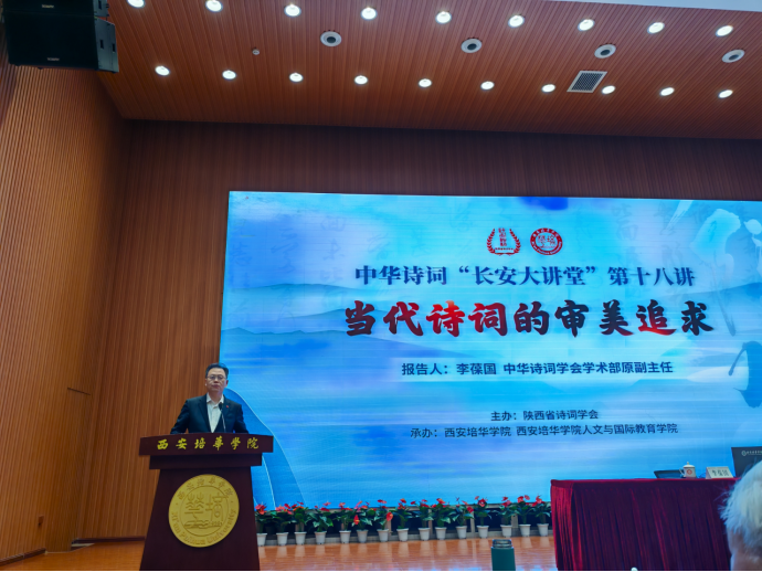 2025年3月15日,由陕西省诗词学会主办,星空·官方站网页版及学校人文与国际教育学院承办的中华诗词“长安大讲堂”第十八讲,在星空·官方站网页版维之图书馆报告厅圆满举行。本次讲座聚焦“当代诗词的审美追求”,特邀中华诗词学会学术部原副主任李葆国先生担纲主讲。来自全国各地的诗词爱好者、星空·官方站网页版人文与国际教育学院中文系全体教师以及部分学生,共计400余人齐聚一堂,共享这场诗词盛宴。