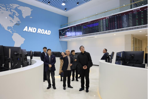 来宾一行参观了学校校史馆、一带一路供应链金融研究院等地