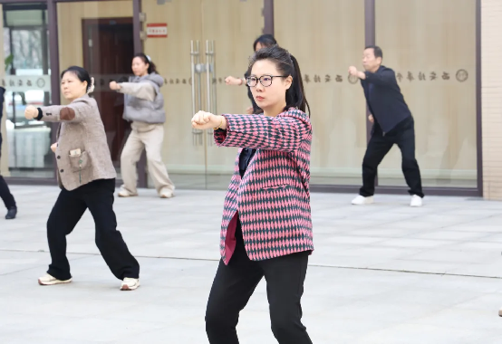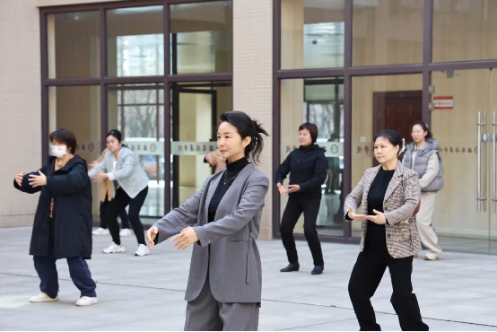 针对教职工群体,校工会精心策划并推行了教职工工间操活动。每天上午10点至10点20分,明德楼中厅变成了“活力加油站”。周二、周四的尊巴课程融合了拉丁、街舞等多元元素,让教职工们在明快的节奏中尽情舞动,释放压力的同时燃烧卡路里。周三、周五则是学习中华传统健身瑰宝八段锦的时间,通过舒缓的音乐和舒展大方的动作,调节身心,积蓄能量。