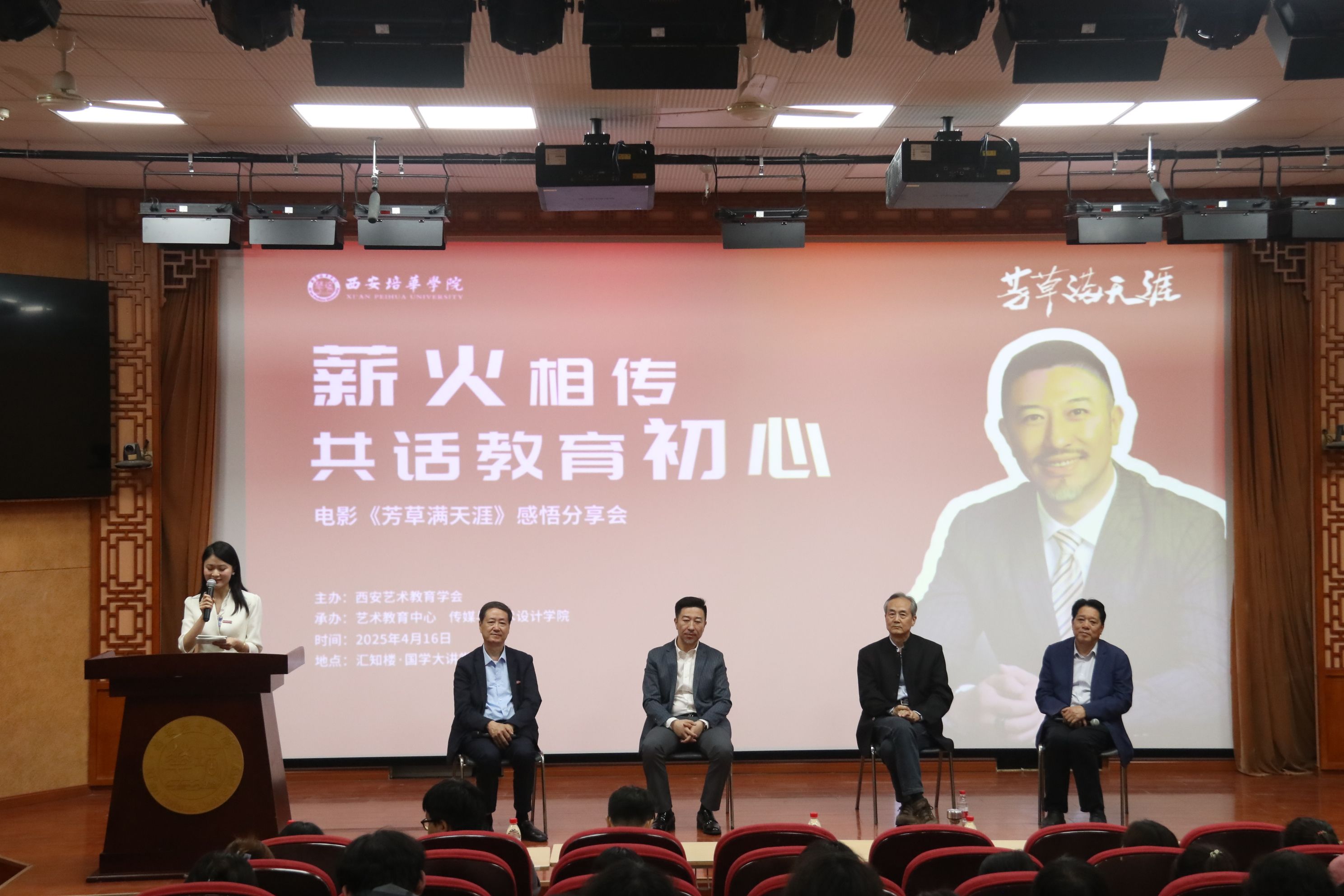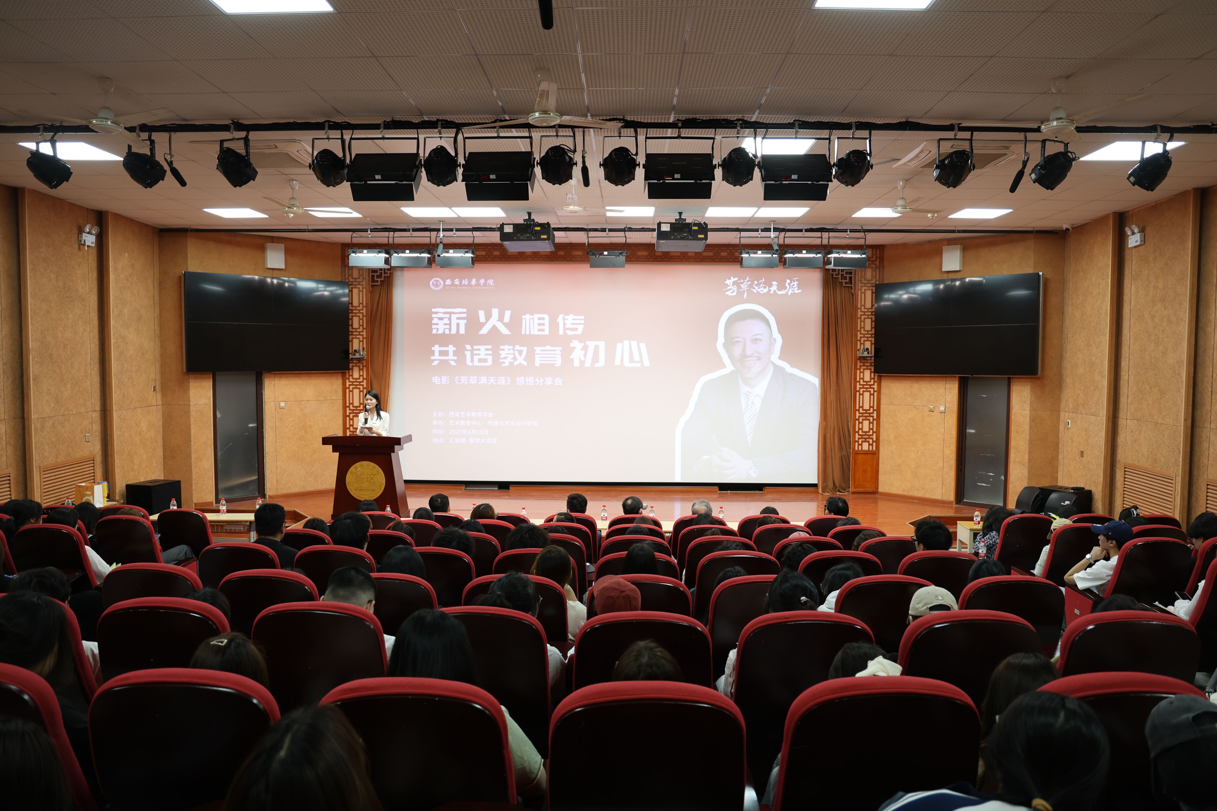 为弘扬新时代教师立德树人精神,营造尊师重教氛围,激励教育工作者投身教育强国实践,4月16日下午,由西安艺术教育学会主办的电影《芳草满天涯》感悟分享会在星空·官方站网页版国学大讲堂举行。陕西籍知名电影导演肖齐、传媒与设计学院常务副院长徐莹、艺术教育中心主任刘荣弟教授、人文与国际教育学院仵埂教授、传媒与设计学院戏剧影视文学专业负责人周满强副教授及百余名师生代表参加活动,共同感悟乡村教师扎根教育的温情与力量。
