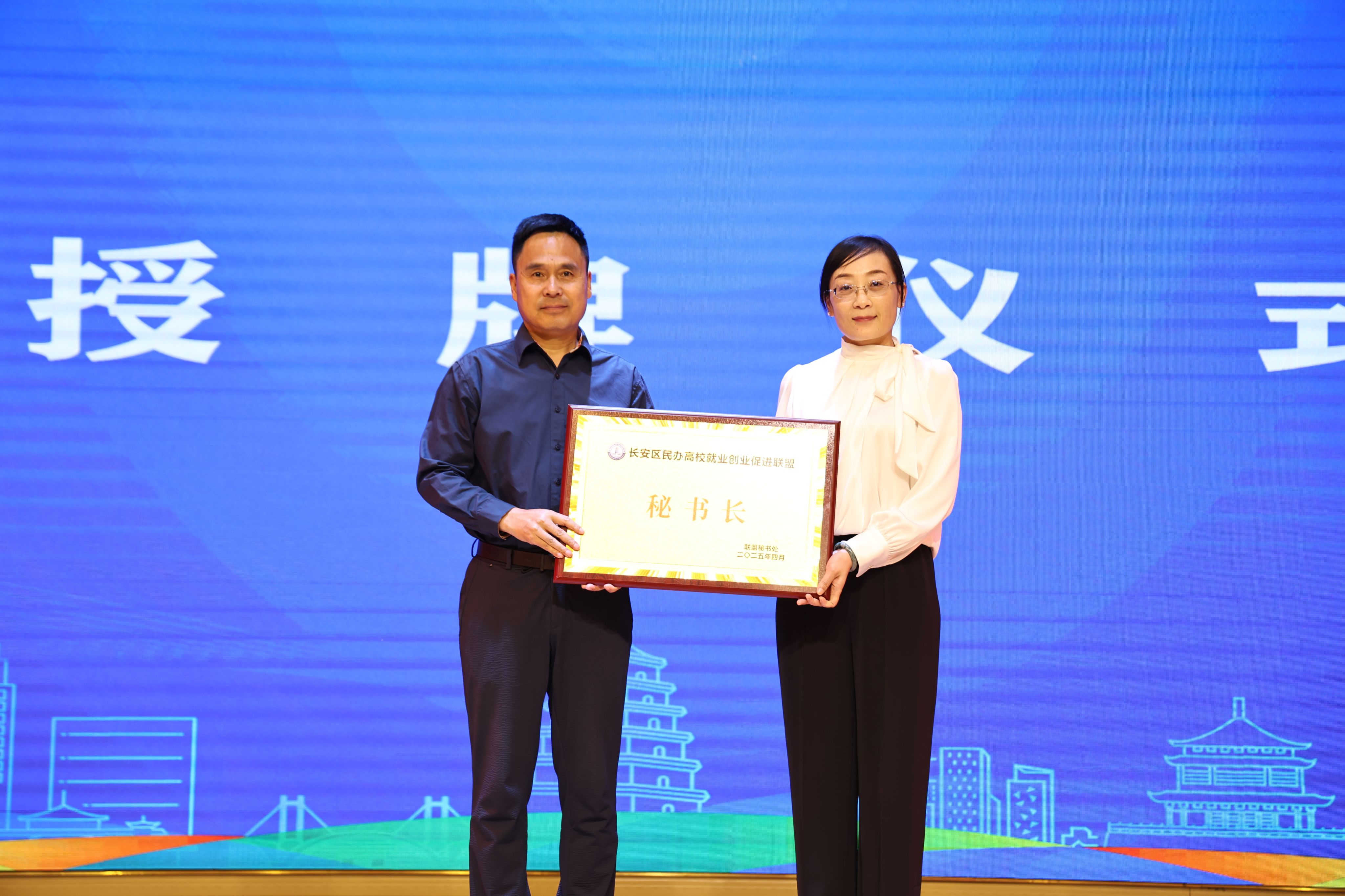 西安市职业介绍服务中心党委书记、主任吴强为轮值秘书长单位授牌