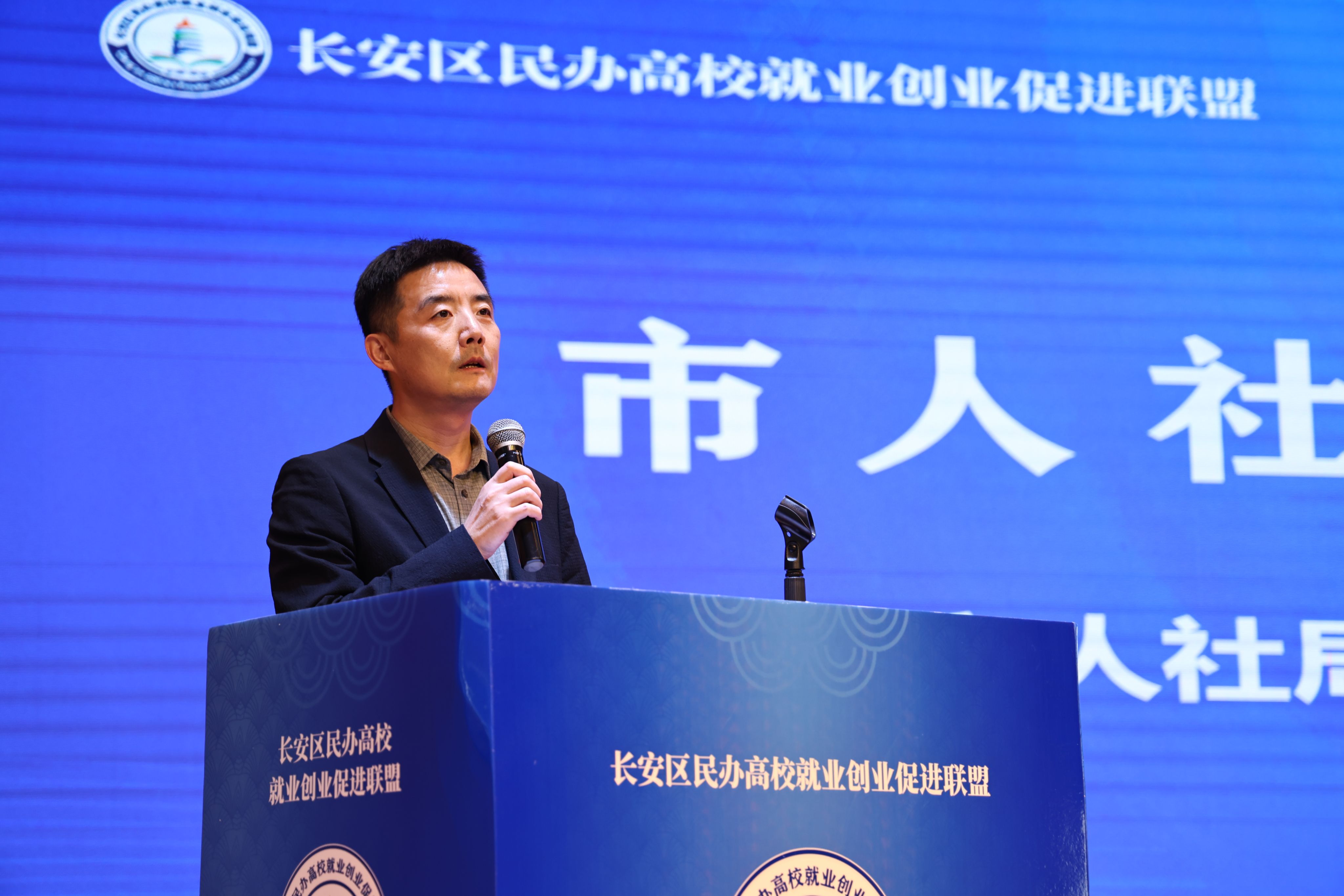长安区人力资源和社会保障局党委书记、局长邢顺耀在讲话中对联盟的未来工作提出三点希望:精准对接供需的桥梁、激发创新的引擎、优化生态的服务平台,要求成员单位聚焦学生需求提供全链条就业支持。