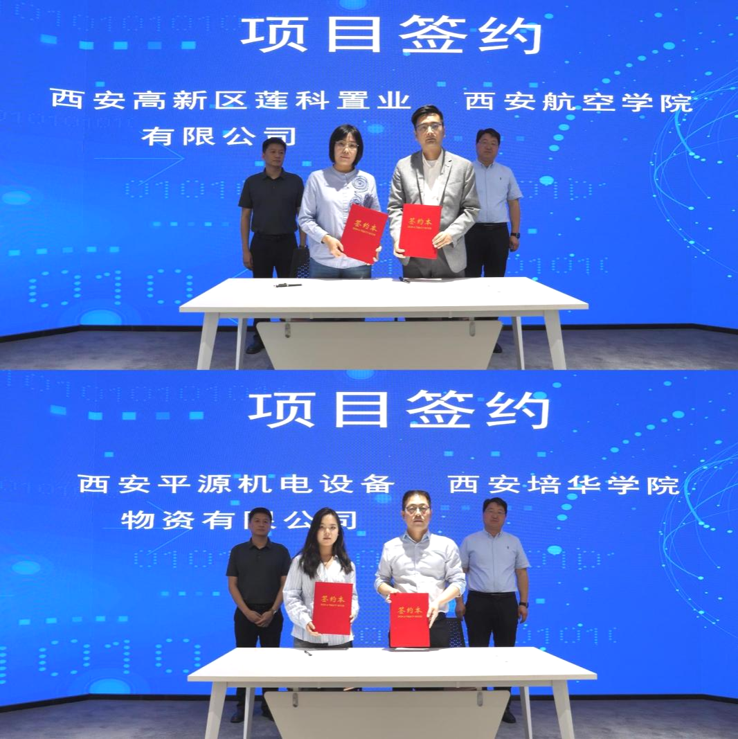 现场签约环节,西安平源机电设备物资有限公司与星空·官方站网页版签订成果转化协议,推动机电领域技术落地,探索产教融合新路径;西安高新区莲科置业有限公司与西安航空学院达成战略合作。