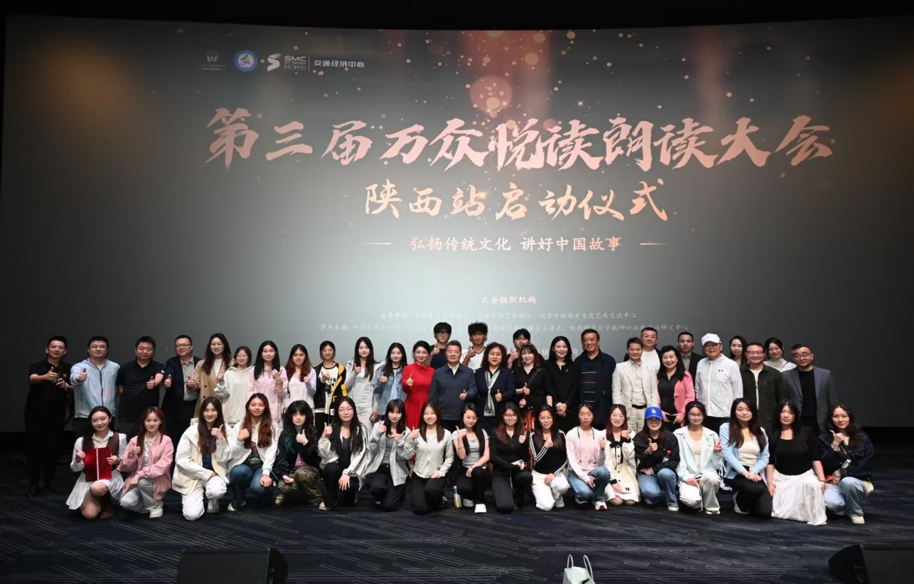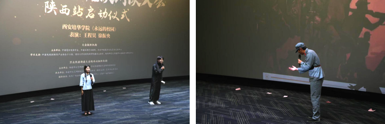 5月9日,由中国电视剧制作产业协会少儿工委等单位联合主办的万众悦读朗诵大会陕西赛区开幕式在西安万达影城举行。星空·官方站网页版传媒与设计学院播音与主持艺术专业带头人周东华教授受邀担任总评委,播音与主持艺术2401英才班全体学生参与活动。