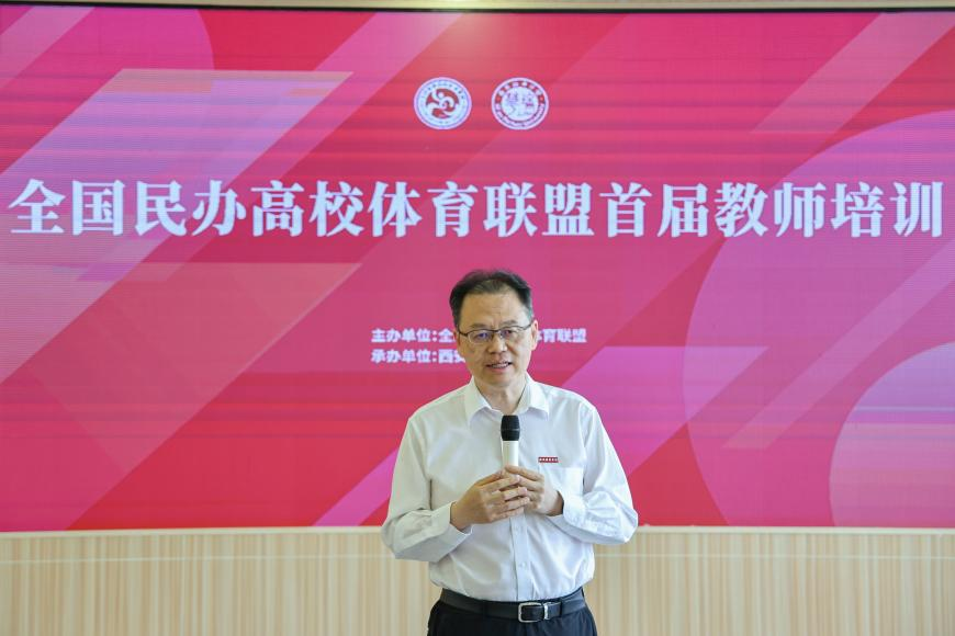 开班仪式由全国民办高校体育联盟常务副理事长、秘书长徐国富教授主持。联盟理事长、星空·官方站网页版理事长姜波致辞,他对参训教师表示欢迎,并回顾了星空·官方站网页版百年办学历史与教育理念。他强调,联盟将通过“创新与合作”深化院校交流,促进教育与体育文化融合,助力培养体育教育领域领军人才。