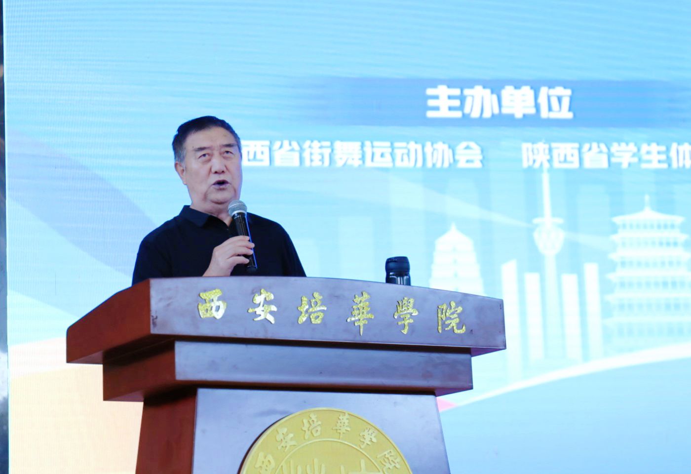 陕西省街舞运动协会主席徐国富教授致开幕词,强调街舞作为融合竞技与艺术的时尚运动,是青少年展现自我、挑战极限的重要平台,并鼓励选手赛出风格、传递友谊。