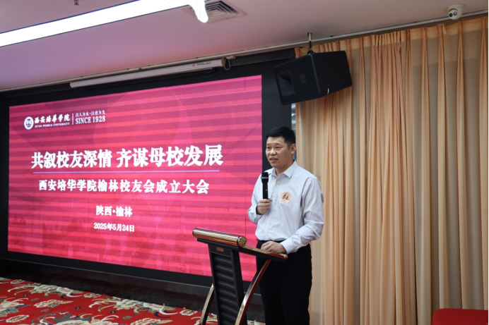 柳雨主任在讲话中详细介绍了学校在校友工作方面的努力与成果,并表示学校将全力支持榆林校友会的工作,期待校友们能够借助校友会平台,实现资源共享、优势互补,推动母校与校友的共同发展。他还特别介绍了学校对外开展的合作业务,愿与全体校友一道深度开展校企合作、产学研用,服务校友的终身发展。