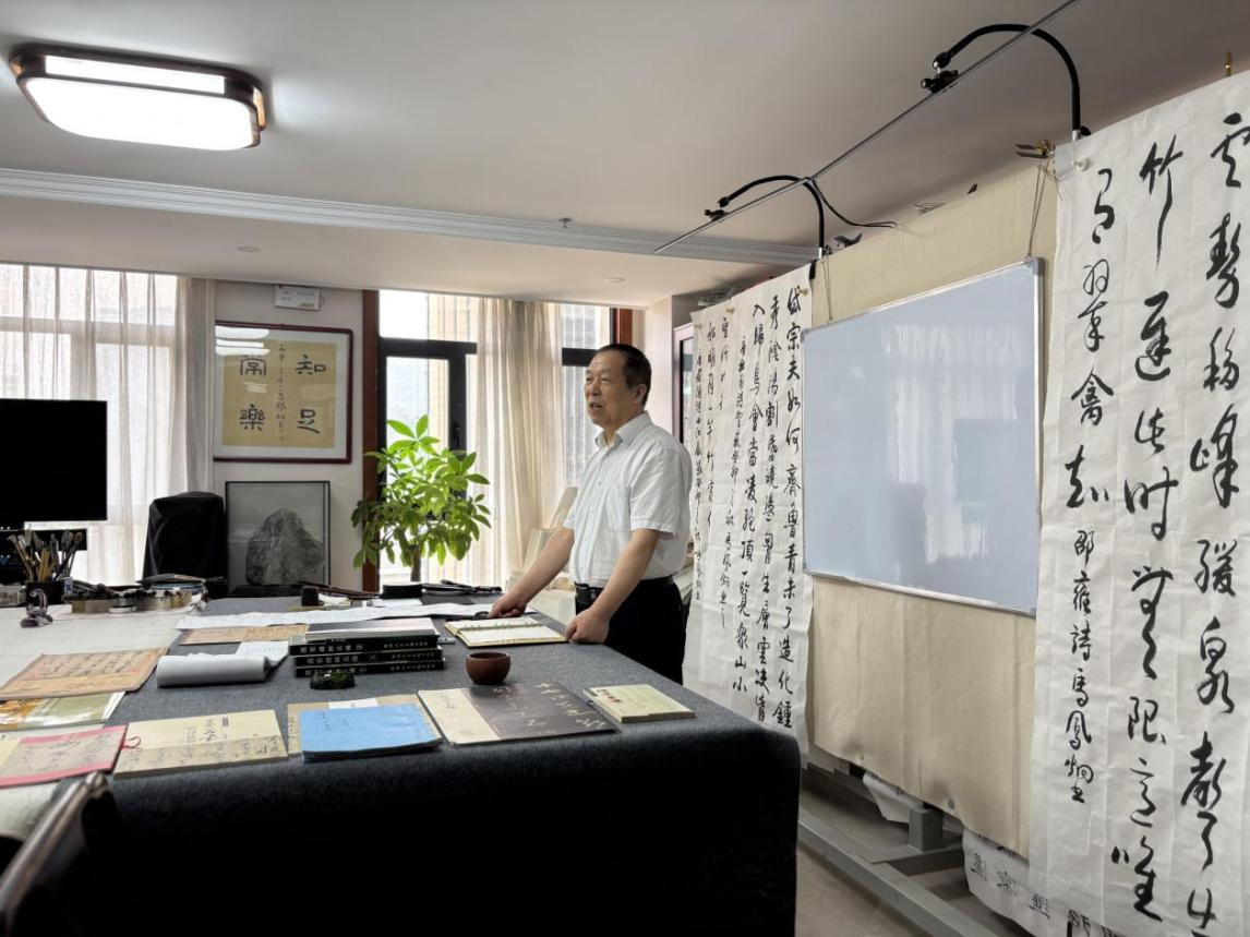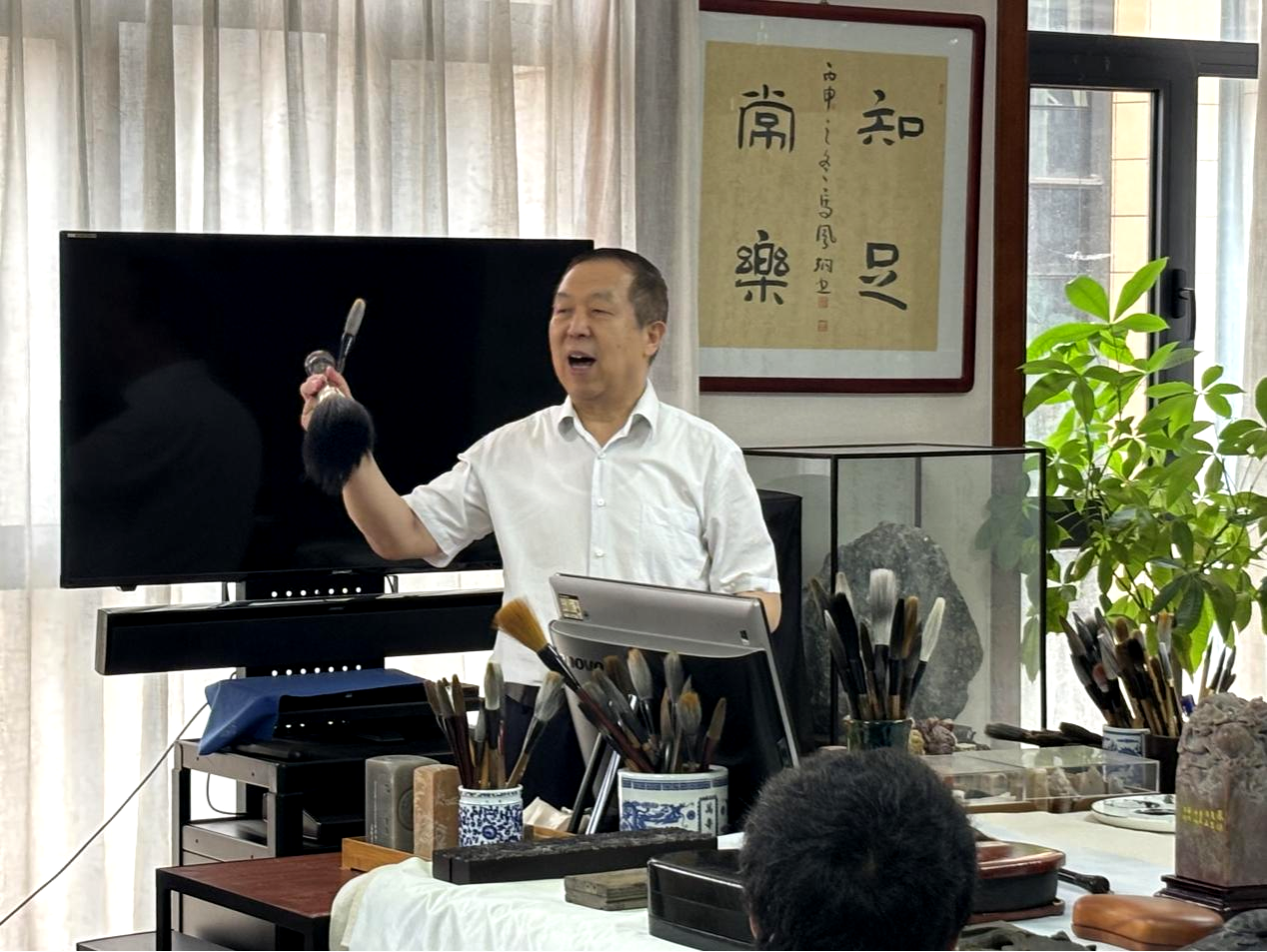 马凤炯先生从“文房四宝”切入,展开生动讲解。他结合实物,细致剖析了笔毫中狼毫的刚劲、羊毫的柔软;墨品里油烟墨的亮泽、松烟墨的古朴;宣纸中生宣的洇染、熟宣的防渗;以及端砚、歙砚等名砚的产地特色与造型艺术。专业且易懂的讲解,让同学们对书法创作的基础要素有了全新认知。