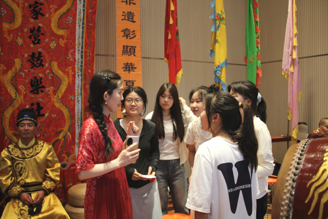 挂牌仪式后,师生观摩了鼓乐社的经典曲目,并参与互动交流。研习社负责人郑亚福社长强调,希望以基地为纽带,吸引更多青年力量参与非遗保护。