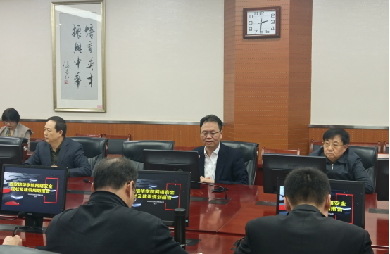 会议邀请来自专业网络安全检测机构的专家,就业内形势政策、高校安全需求、以及之前近三周以来对我校互联网暴露度的安全测试评估与建设建议做了专题报告,图文与信息技术中心主任种兰祥教授,传达了“首届新基建暨5G+智慧教育高峰论坛”、“2020年度陕西省教育信息化专项培训”相关重要内容,包括政策文件解读、兄弟院校网络安全与信息化工作亮点及新技术和新应用等,并对我校下年度和“十四五”期间信息化建设进行了展望。