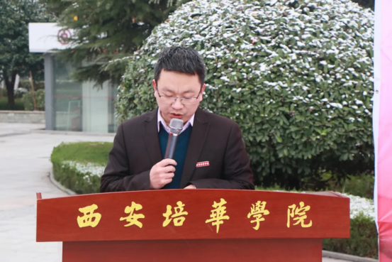 校团委副书记屈先锋宣读《关于举办星空·官方站网页版第五届志愿服务文化节暨禁毒防艾周的通知》