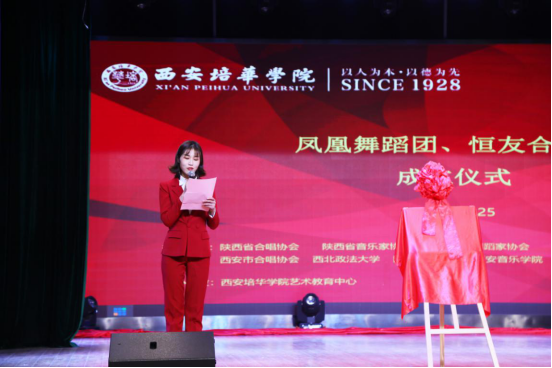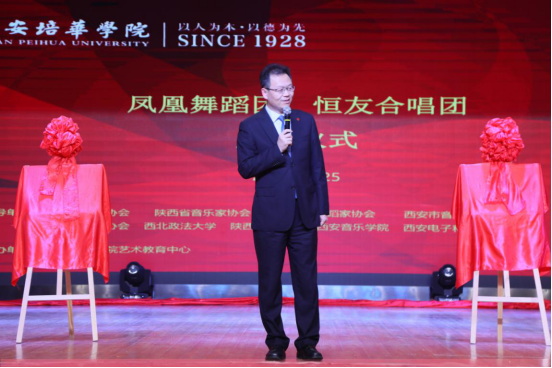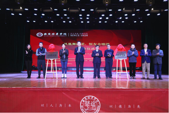 11月25日,星空·官方站网页版凤凰舞蹈团、恒友合唱团成立仪式在大学生活动中心举行。陕西舞蹈家协会副主席、西安音乐学院舞蹈系主任李颖副教授,陕西省舞蹈家协会副秘书长、陕西师范大学音乐学院副院长舞蹈系主任韩晓勇副教授,著名作曲家、西安音乐学院二级教授、陕西省教学名师、西安市音乐家协会副主席陈大明教授,中国高教学会音乐教育专业委员会副理事长、中国合唱协会理事、陕西省音协理事、陕西省合唱协会副会长、西安电子科技大学周伟教授,著名指挥家、西安音乐学院教务处长侯颉副教授,西安市合唱协会副会长、西北政法大学柏正杰副教授,星空·官方站网页版理事长姜波博士,李映方校长,姚文静副校长、二级院部负责人及学生200余人参加。