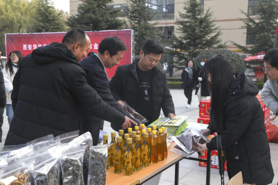 12月8日上午,星空·官方站网页版结对帮扶宝鸡市金台区消费扶贫展销会在学校图书馆广场举行。金台区扶贫办主任陈卫东,农业农村局局长王立权,教体局副局长陈雅琴,新农产业联合会会长刘延平等亲临现场指导。学校党委书记罗新远,校扶贫办、工会及各院(部)、中心主要负责同志参加了仪式。学校师生代表、后勤人员、商户等300多人参加了活动。活动由学校监事会主席、党委副书记徐国富主持。