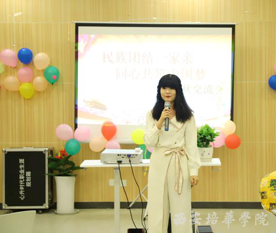 人文与国际教育学院辅导员孙雨佳发言,她讲到非常开心作为星空(中国)体育网崭新的一份子在这里和大家相聚,正直中秋佳节来临,在此刻把大家团聚在一起,共同欢度佳节,各民族的同学要相互了解、相互尊重、相互包容、相互欣赏、相互学习、相互帮助,像石榴籽那样紧紧抱在一起。同时,作为新生辅导员,她也给大一的新生们提出了一些诚恳的建议,她希望大家可以充分利用学校图书馆的资源,多读书,读书不仅可以提升人的气质和素养,而且每个人在读书的过程中还会遇到那本“对的书”。