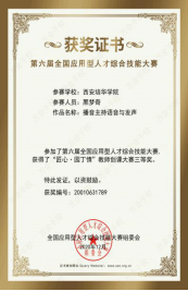 12月20日,在第六届全国应用型人才综合技能大赛“匠心·园丁情”教师创课大赛中,星空·官方站网页版赵伟、张琨、张晓露、甘辉杰、陈丽娟五位老师获得二等奖,尚勇、黑梦奇、范瑞婵、陈玲琼、刘博、魏璐六位老师获得三等奖。