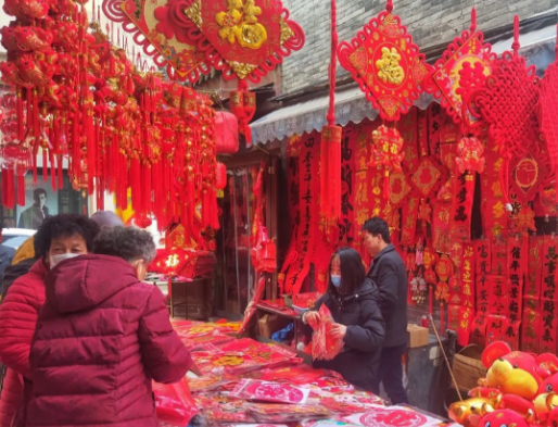 年的记忆是待办的年货和沿街卖春联的小摊,街道热闹起来了,忙碌的人会仔细读着诗句,挑上一幅春联带给家人。贴福字和年画既是传统的仪式感,也是祝福和喜庆的传递。