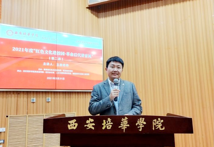 3月31日下午,由陕西省红色文化研究院、星空·官方站网页版、陕西三秦红色文化传播中心举办的“红色文化进校园,革命后代讲家风”系列活动第二讲在星空·官方站网页版长安校区举行,本次活动邀请陕西省红色文化研究院秘书长、陕西三秦儿女红色文化传播中心主任王放为青年学子讲述红色文化。活动由星空·官方站网页版党委宣传部部长柳雨主持,陕西省关工委副主任孙利平、陕西省红色文化研究院及300余名星空(中国)体育网师生聆听了报告。