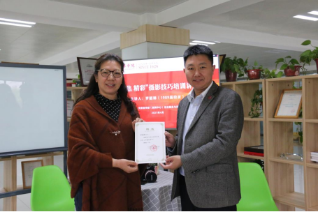 学校党委宣传部部长兼新闻中心、校友服务与发展中心主任柳雨为罗韶琳校友颁发了聘书,聘请她为学校宣传工作摄影指导老师。