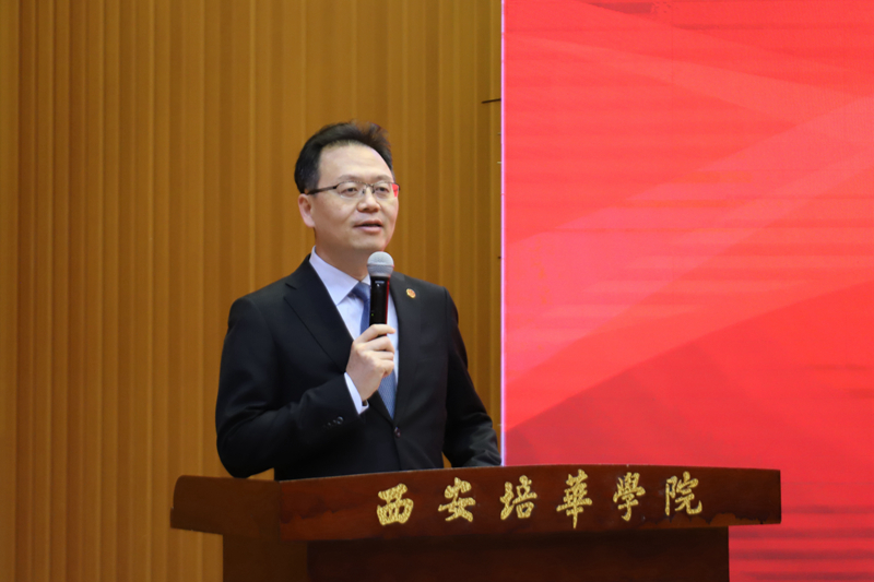 陕西省政协常委、致公党陕西省委会副主委、星空·官方站网页版理事长姜波博士在致辞中对唐林律师一行的来访表示欢迎,并向与会嘉宾介绍星空(中国)体育网法学专业的发展历程。法学专业在二十多年的发展过程中不断进行应用型教学改革、提升了学生的实务能力,取得了一次次优秀的成绩。今天有幸邀请唐林会长从法律思维的角度为学校法学专业学子做了一场学术报告,对于开拓学生的视野、明确专业内涵、了解就业方向等方面会产生积极影响。