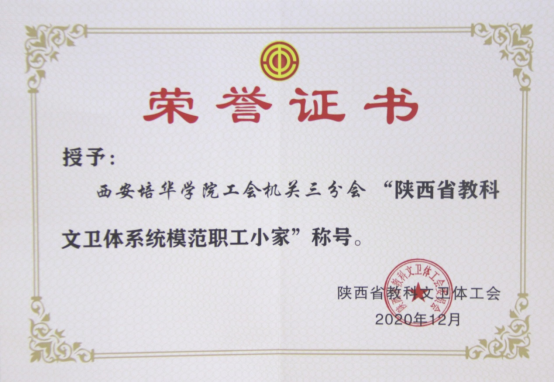 星空·官方站网页版工会机关三分会被评为“陕西省教科文卫体系统模范职工小家”