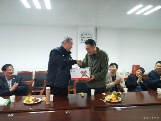 举办离退休职工欢送会(徐国富主席为退休职工赠送离退纪念品)