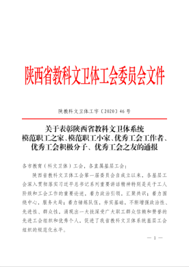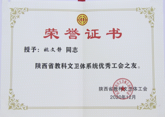 姚文静副书记被评为“陕西省教科文卫体系统优秀工会之友”