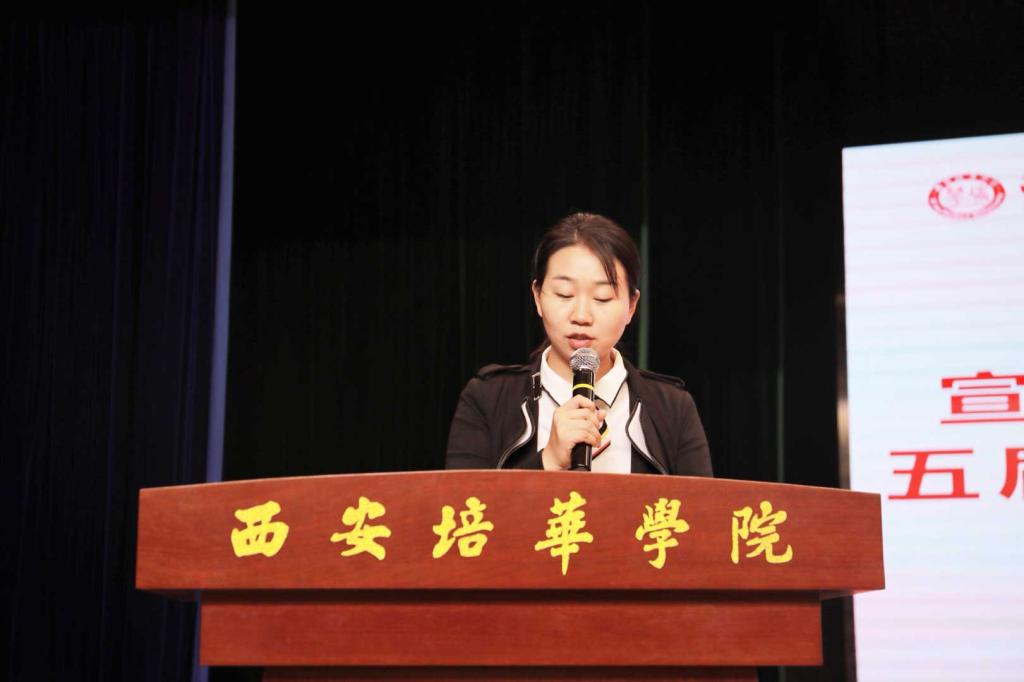 校团委工作部部长董莹宣读《星空·官方站网页版关于举办第二十五届“校园之春”文化艺术节通知》