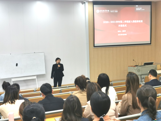 4月26日下午,2020-2021学年第二期新入职教师培训开班仪式在育英楼3501报告厅顺利举行,开班仪式由教师发展中心常务副主任唐学学主持。